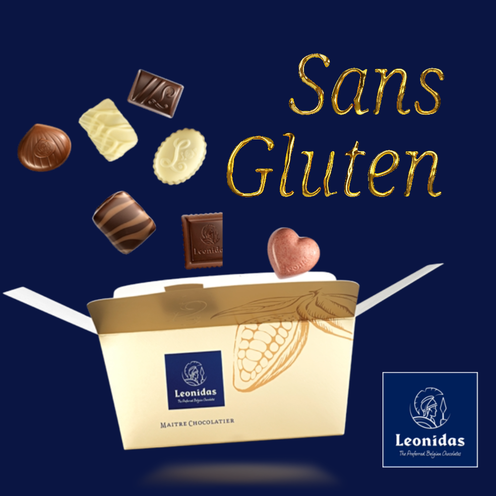 "Découvrez les délicieux ballotins de chocolats Leonidas sans gluten. Chaque boîte renferme une sélection exquise de pralinés et de ganaches, élaborés avec soin à partir d'ingrédients de haute qualité. Offrez-vous ou offrez à vos proches ces trésors chocolatés sans gluten pour une expérience gourmande inoubliable."